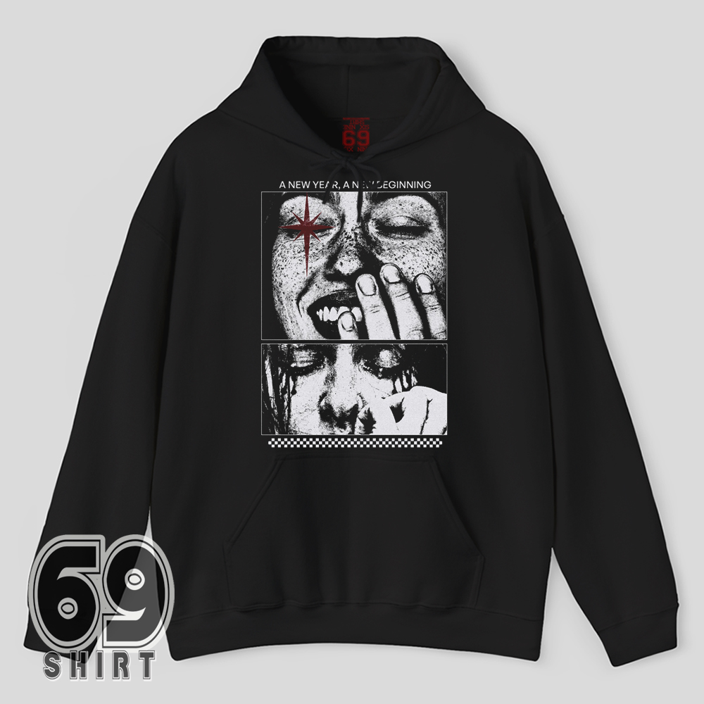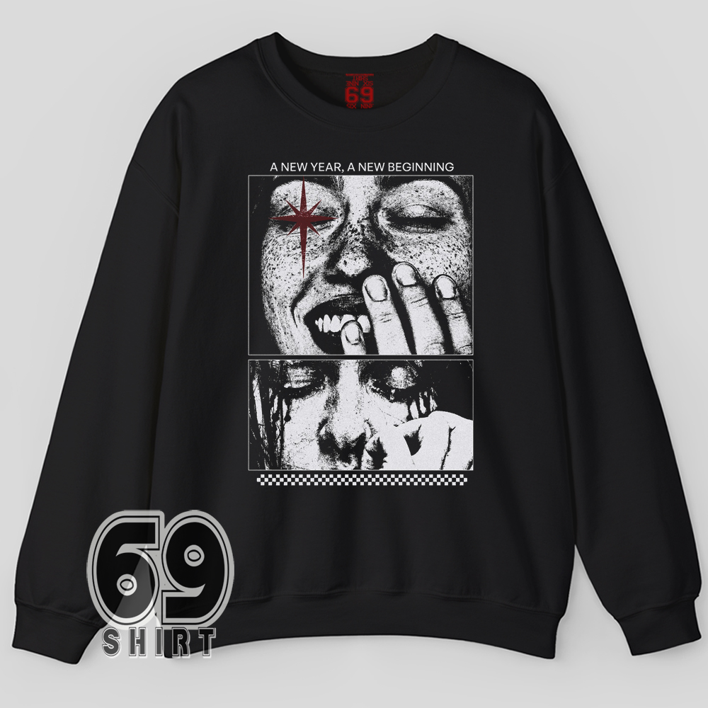 The A New Year, A New Beginning Shirt is a darkly poetic streetwear piece that blends punk zine visuals with existential energy.