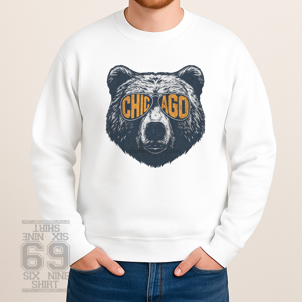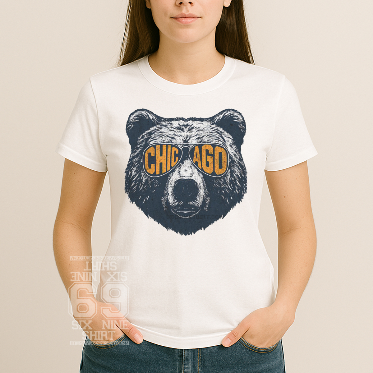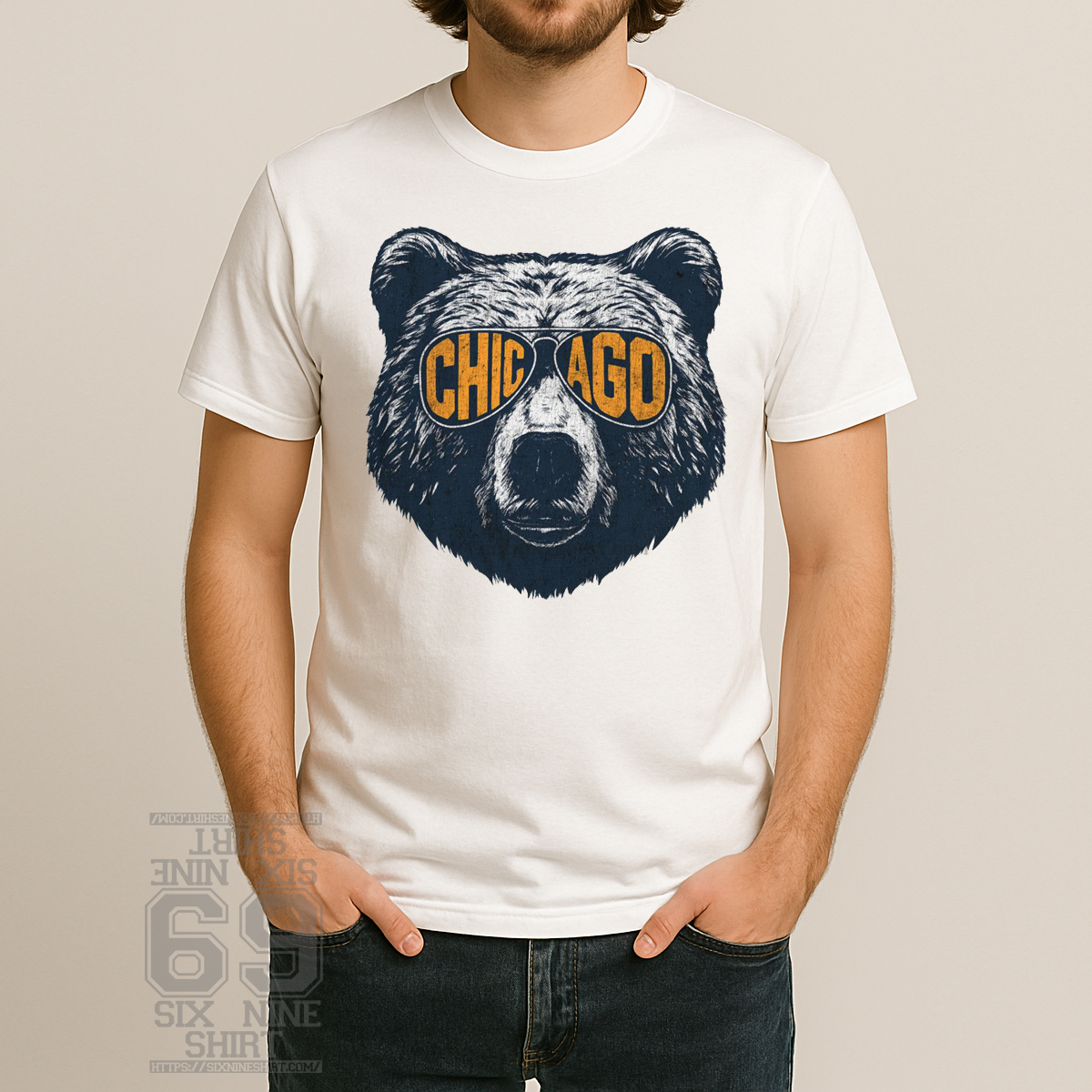 Show off bold city pride with the Chicago Bear Sunglasses Shirt, a powerful and stylish graphic featuring a fierce bear rocking sunglasses with the word “Chicago” reflected across the lenses. This design blends urban streetwear attitude with iconic wildlife symbolism, representing strength, confidence, and unmistakable Windy City energy.