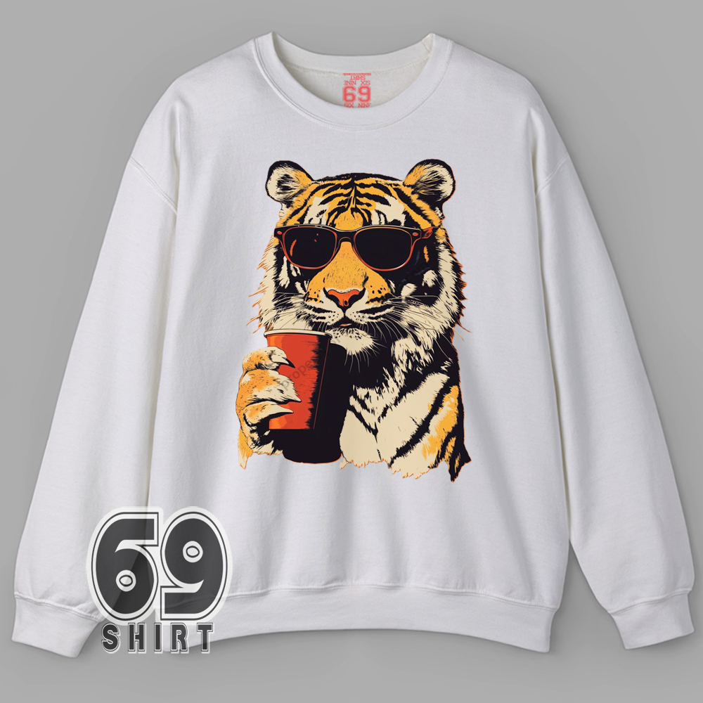 Bring the party to the jungle with this Cool Tiger With Sunglasses Shirt, featuring a bold retro-style tiger rocking shades and holding a drink. This design perfectly blends humor and attitude — a statement piece for those who live life with confidence and a bit of wild charm.
