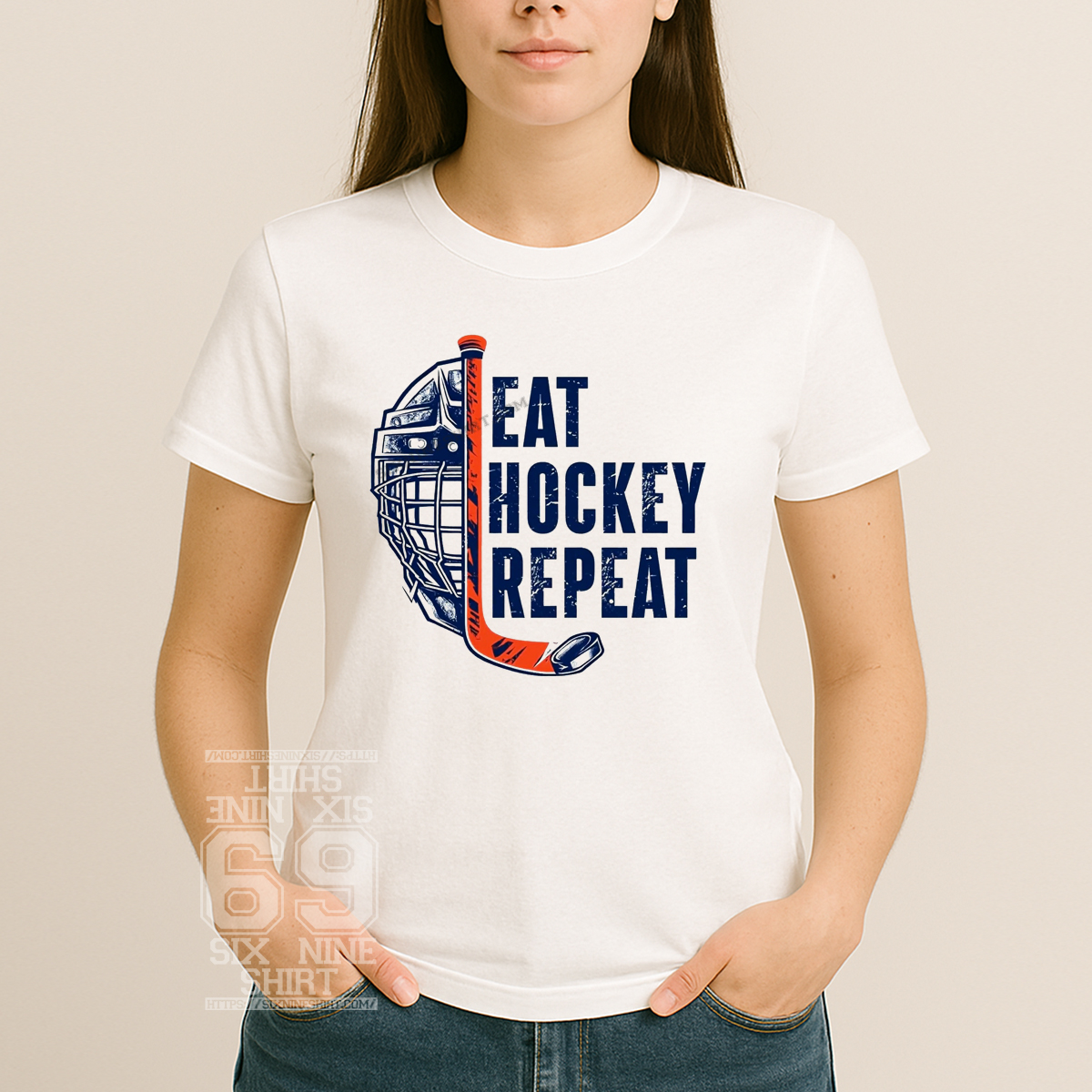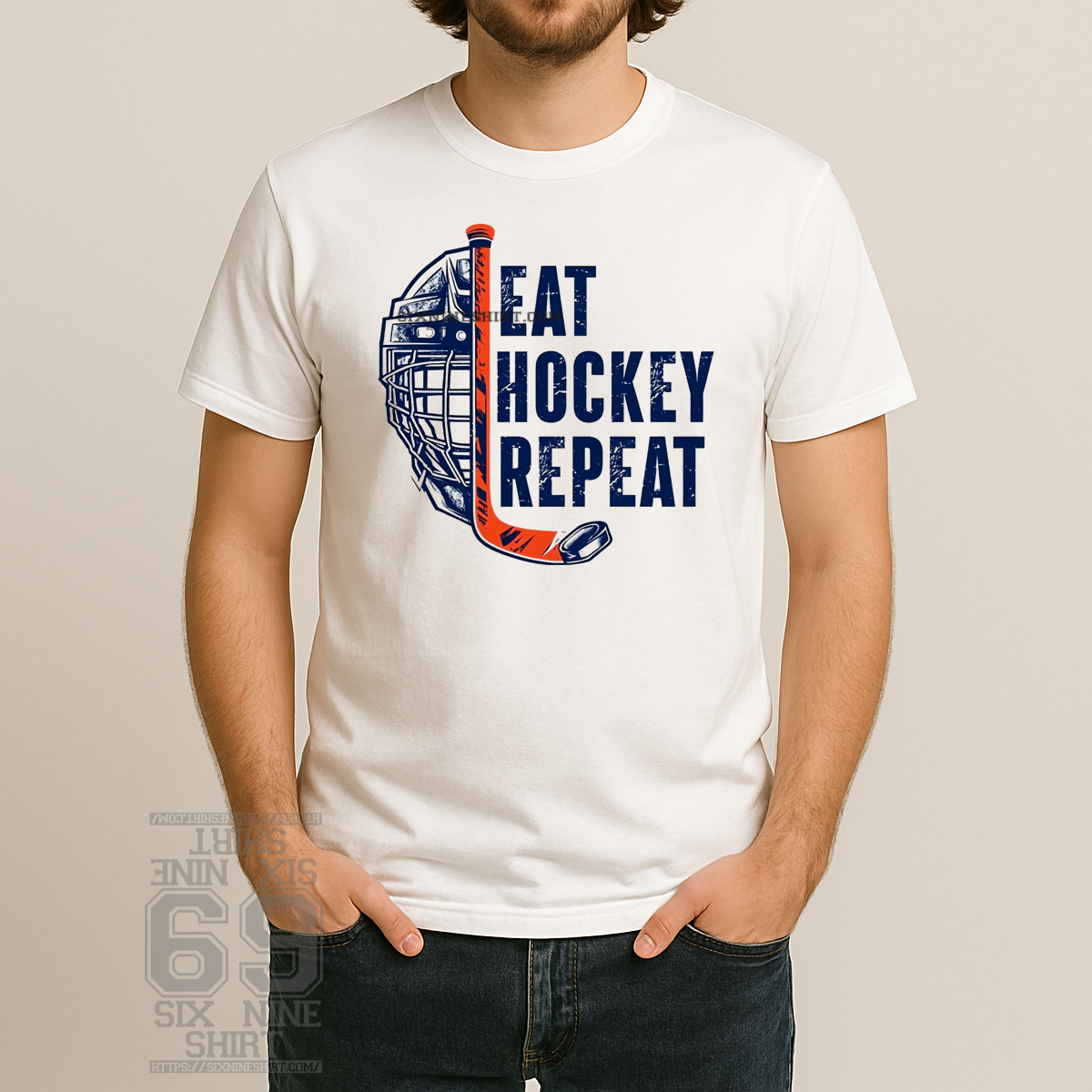 The Eat Hockey Repeat Shirt is made for players, fans, coaches, and anyone who lives for the rink.
