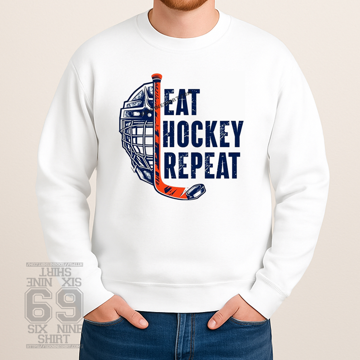 Eat Hockey Repeat Shirt Funny Hockey T-Shirt Sweatshirt Hoodie for Hockey Fans