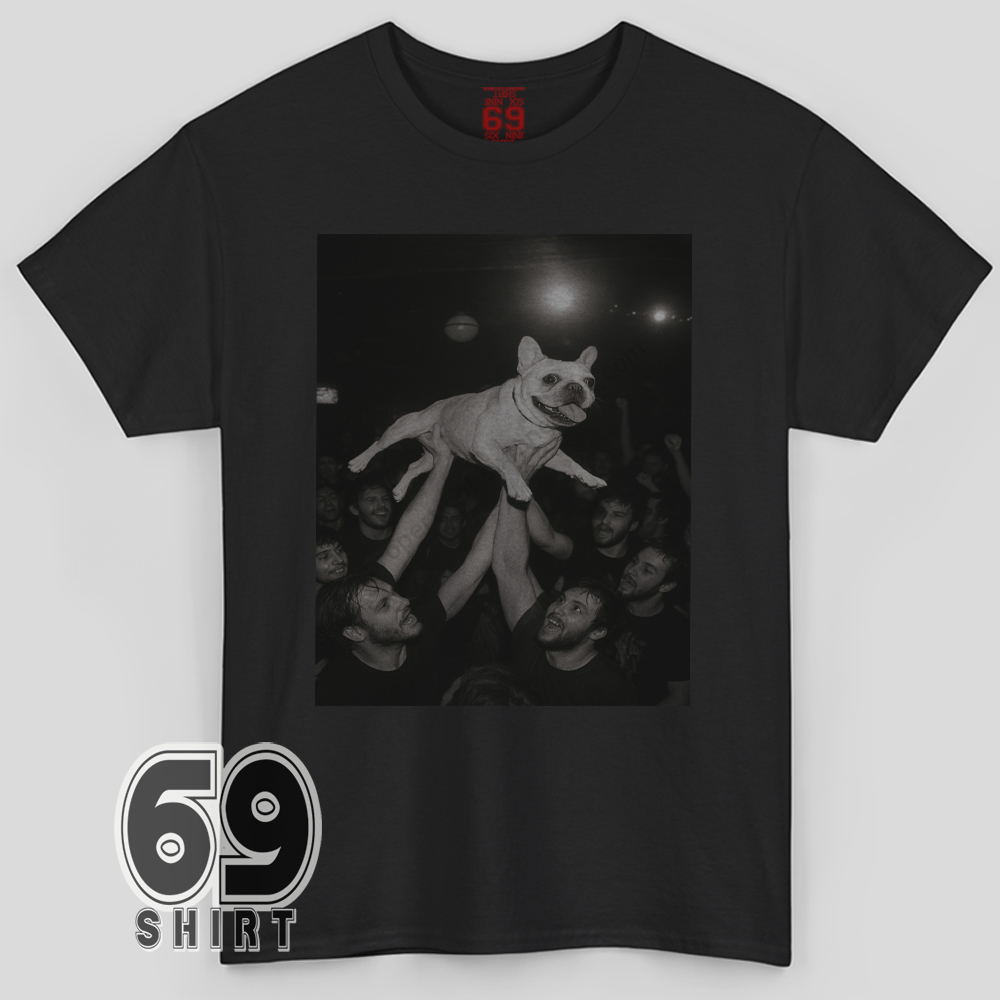 Turn up the volume and let your inner party animal loose with our Funny French Bulldog Crowd Surfing T-Shirt!