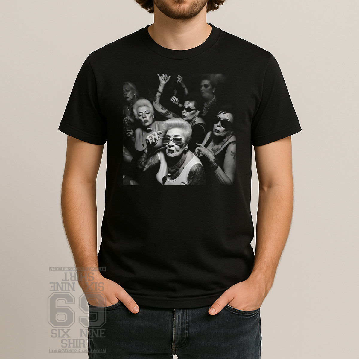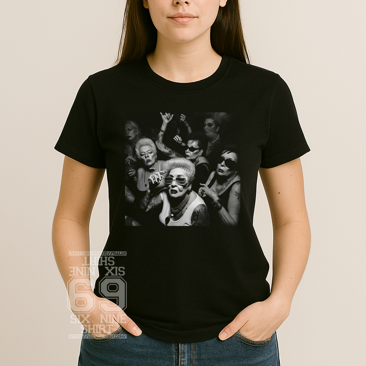 Whether you’re into punk aesthetics, vintage photography, or ironic humor, this shirt instantly stands out. It resonates strongly with search trends around funny grandma shirts, rebellious women fashion, and edgy graphic tees, making it highly searchable and shareable.