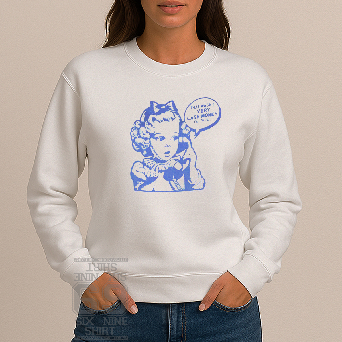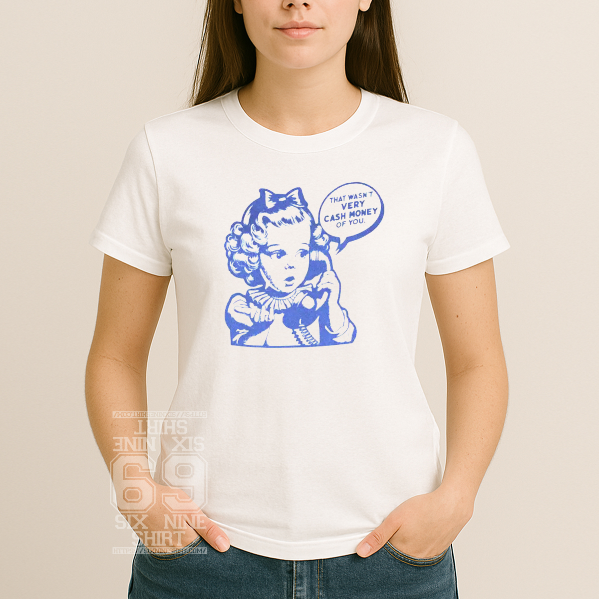 Add a touch of irony and vintage flair to your wardrobe with the Funny Retro Comic Girl Shirt. This nostalgic design features a hand-drawn retro girl holding a telephone with the quote: “That wasn’t very cash money of you.” A perfect mash-up of mid-century illustration and modern sarcasm.