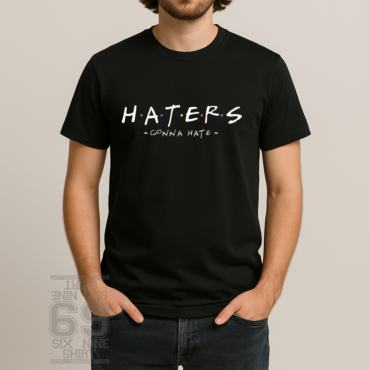 The Haters Gonna Hate Parody Typography Shirt is inspired by nostalgic sitcom Friends 90s Tv Show style lettering, reimagined with modern sarcasm and bold attitude. Designed for people who don’t explain themselves, this graphic tee delivers humor without trying too hard.