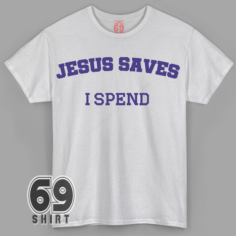 Add a touch of humor to your faith-inspired wardrobe with the Jesus Saves I Spend Shirt. This witty tee features bold varsity lettering that reads “Jesus Saves – I Spend,” blending playful irony with minimalist style.