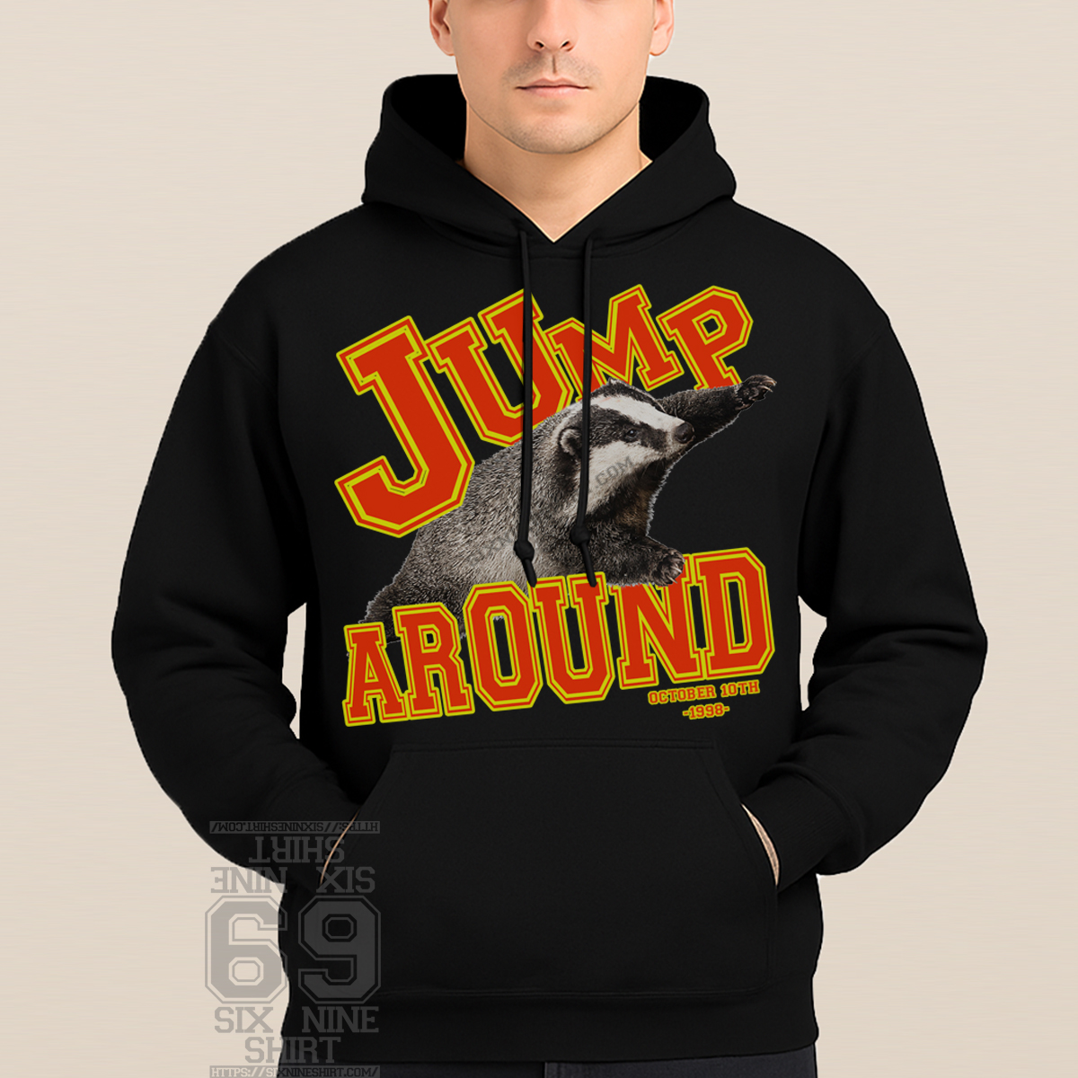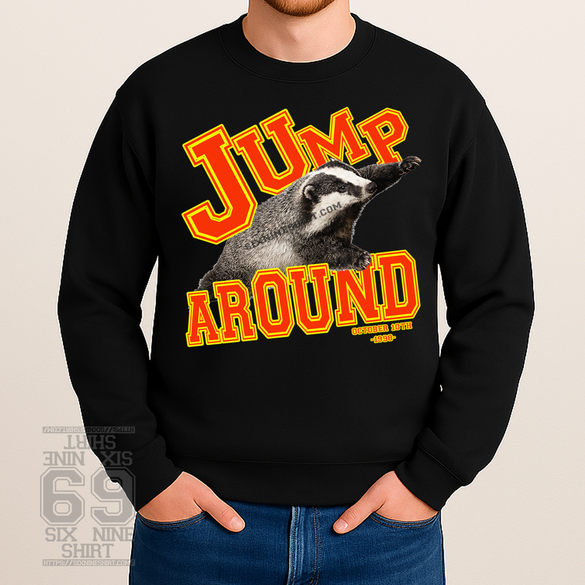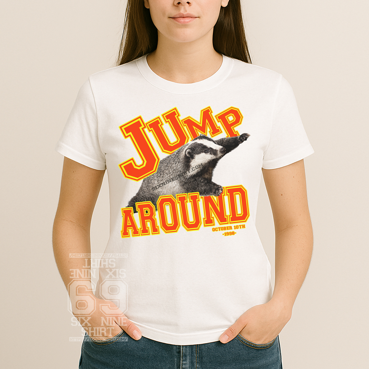 On October 10th, 1998, a tradition was born. When Jump Around blasted through the speakers, the crowd erupted, the stands moved, and Wisconsin Badgers game day history changed forever. This design captures that legendary moment with bold varsity-style lettering and a powerful badger graphic that represents energy, pride, and unity.