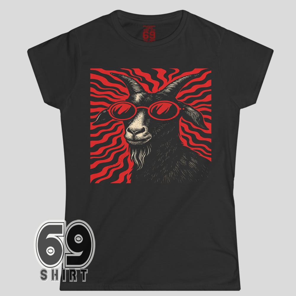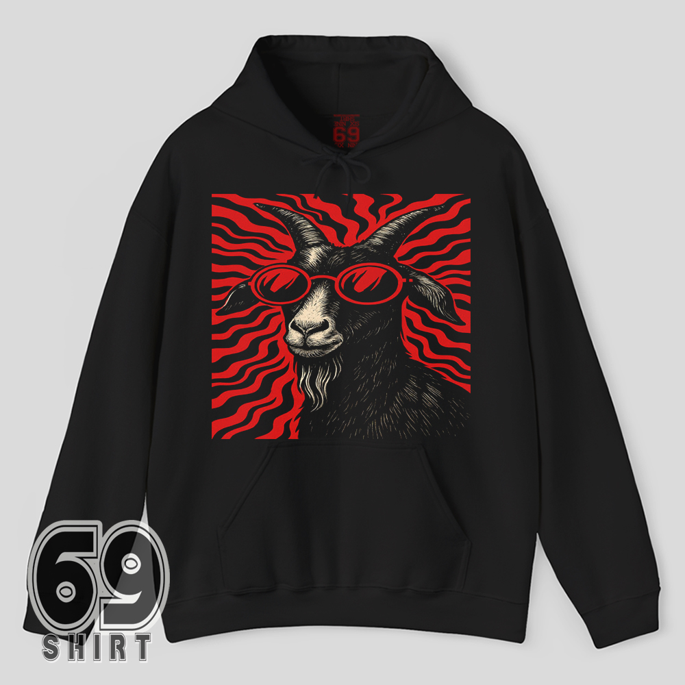 Psychedelic Goat Shirt Trippy Red and Black Goat in Sunglasses Graphic Tee