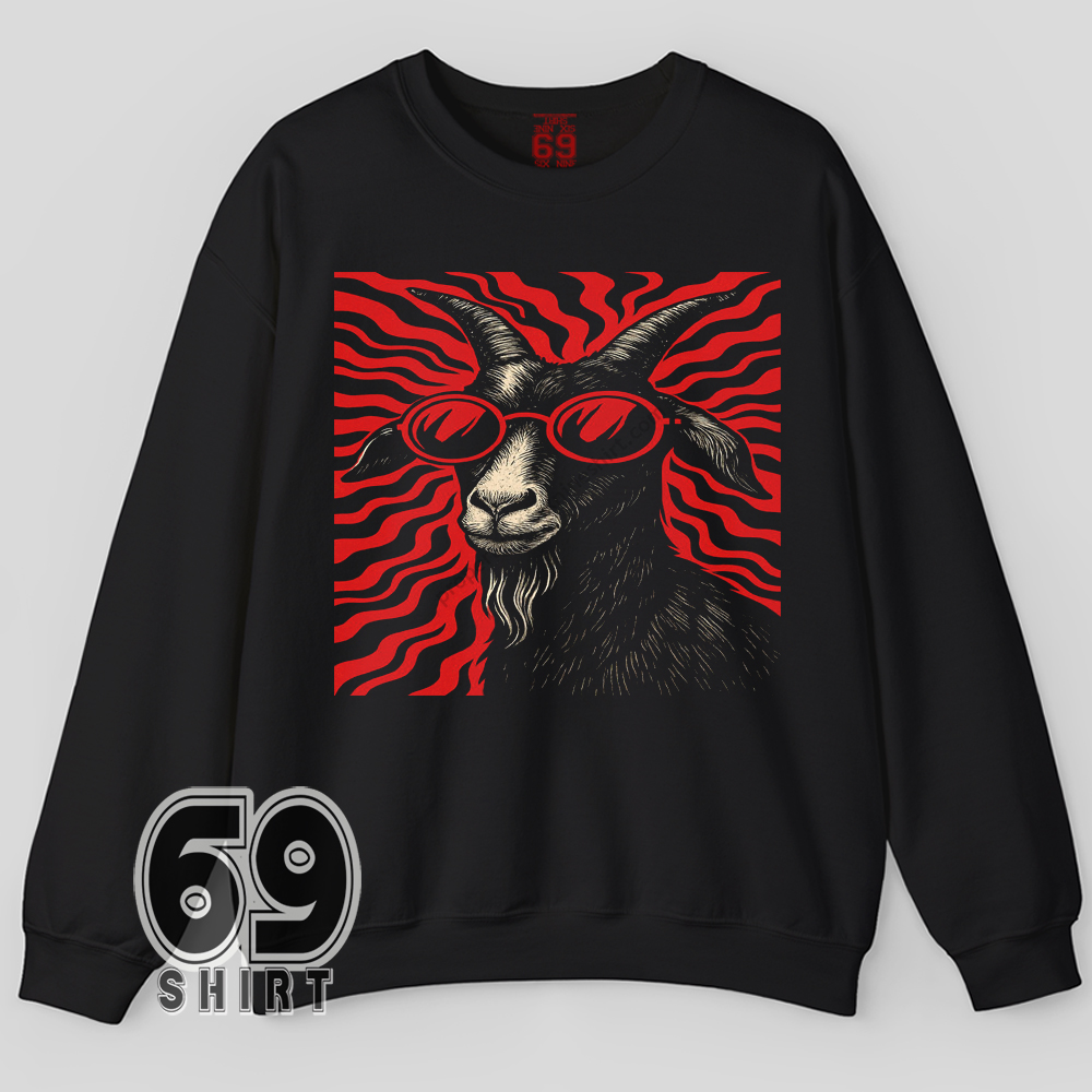 Step into the surreal with the Psychedelic Goat Shirt, featuring a trippy black goat rocking red sunglasses against a hypnotic wavy background. This bold red-and-black design blends psychedelic art, occult aesthetics, and humor for a statement piece that’s pure attitude.