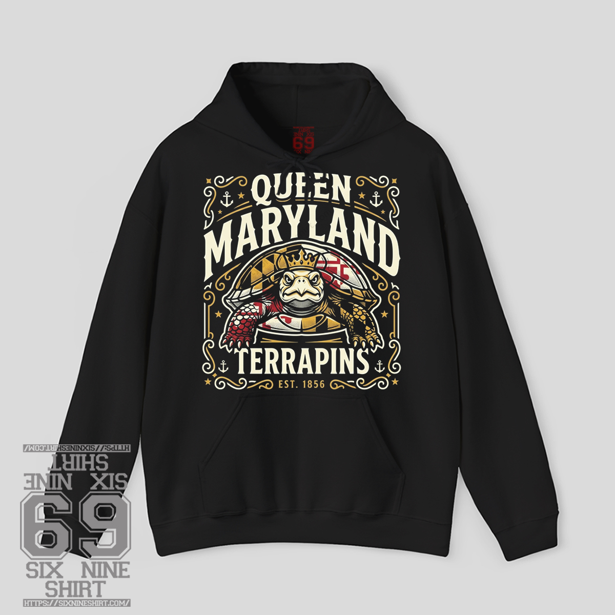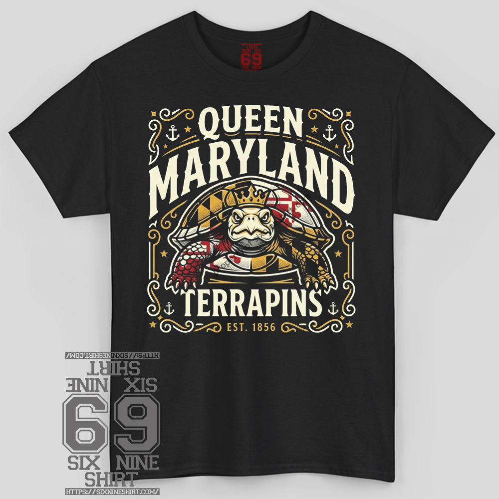 Celebrate the legendary terrapin spirit with this bold Queen Maryland Terrapins T-Shirt inspired by the iconic Diamondback Terrapin, a symbol deeply connected with the state of Maryland.