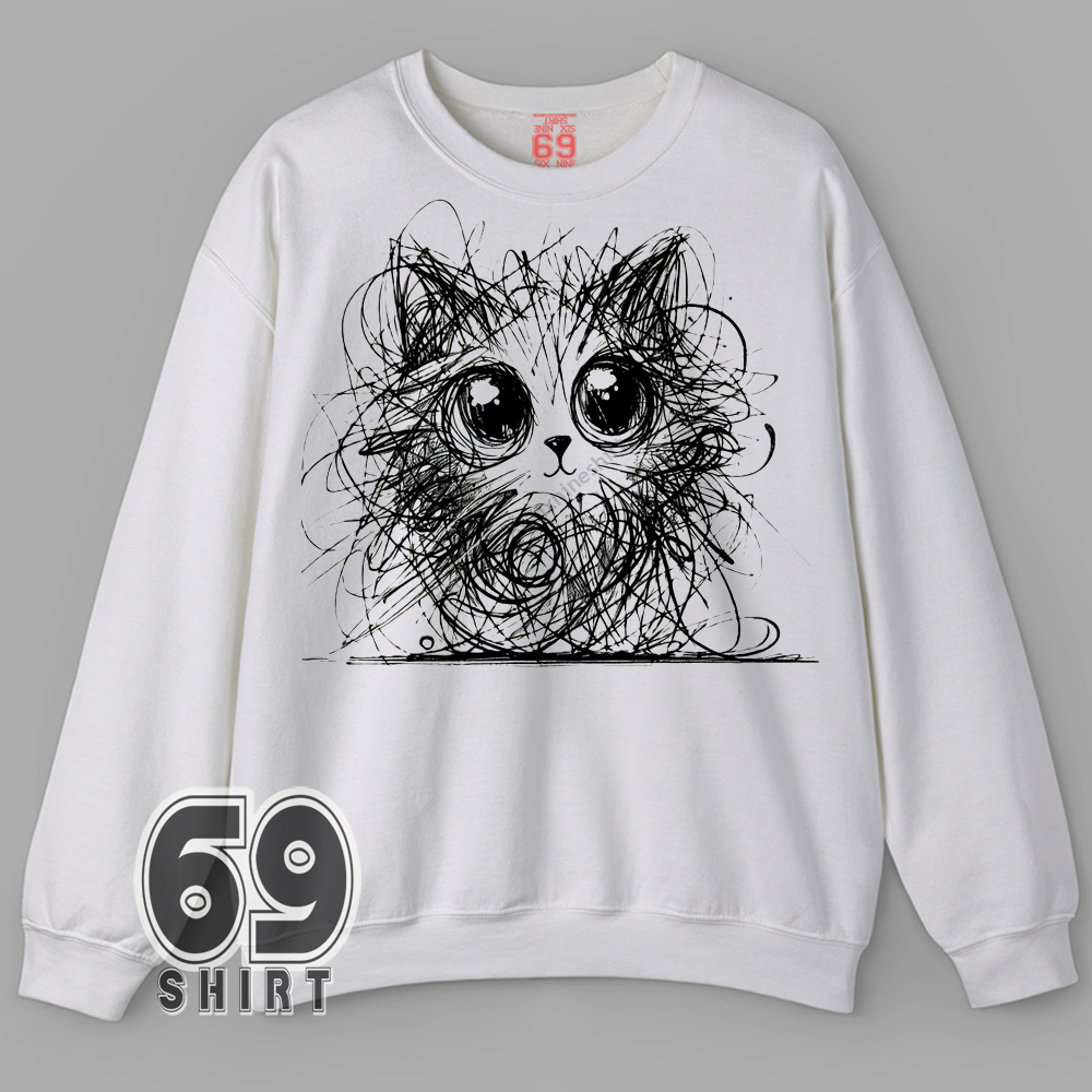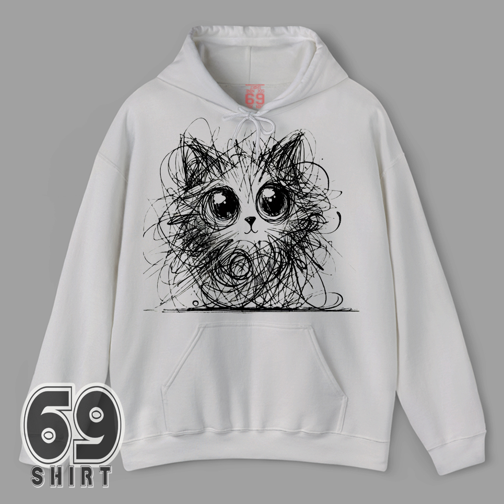 Embrace the chaos and the cuteness with our Scribble Cat Shirt, featuring a wild, hand-drawn sketch of a fluffy kitty with giant curious eyes.
