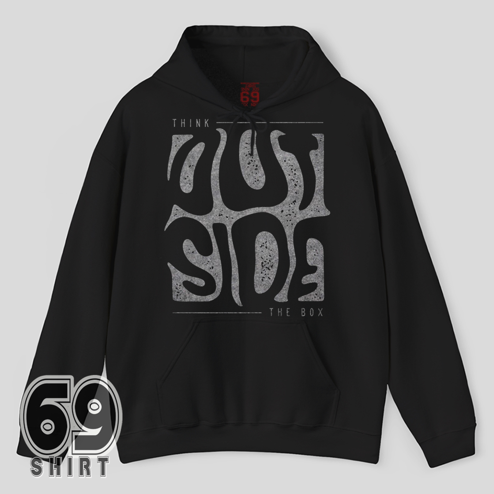 The Think Outside The Box T-Shirt blends sleek minimalism with distorted typography, creating a visual metaphor for breaking boundaries.