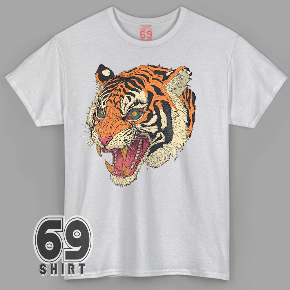 This exclusive Six Nine Shirt design features a roaring tiger head in vibrant, trippy colors with hypnotic eyes — a piece that commands attention wherever you go.